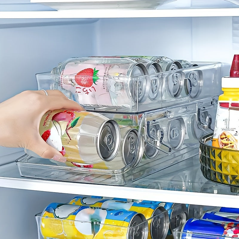 1pc Double-Layer Stacking Can Dispenser - Automatic Roll-Down Holder with Double Layers for Space-Saving Storage - Perfect for Refrigerator, Countertop, Cabinet, and Drawer Organization - Kitchen Supplies and Beverage Storage
